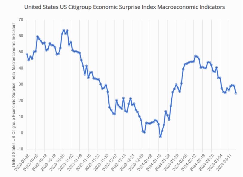 Where do we reside today? With regard to the US economy, if we look at the Citigroup Economic Surprise Index, a measure of differences between actual economic releases and consensus expectations, we find that the US economy is weakening.